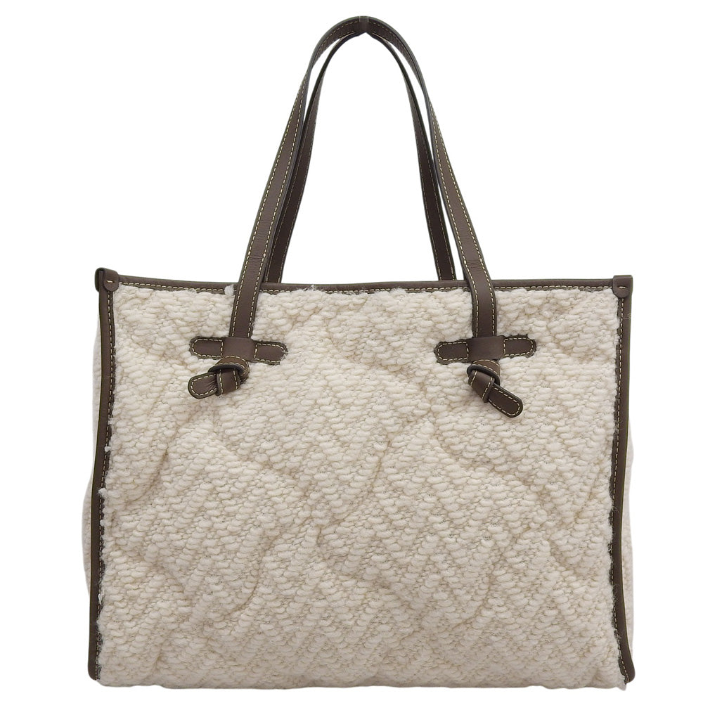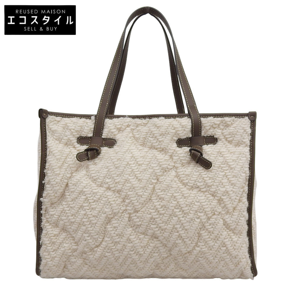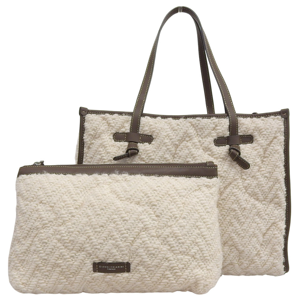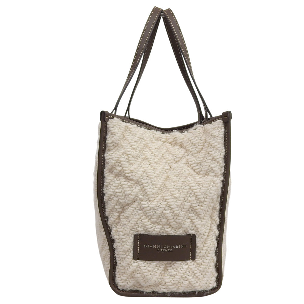 GIANNICHIARINI ジャンニキアリーニ 美品 マルチェッラ ニット トートバッグ レディース ホワイト×ブラウン トートバッグ M