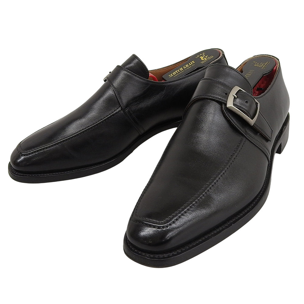 SCOTCH GRAIN スコッチグレイン 美品 アシュランス シングルモンクシューズ メンズ ブラック 25cm 3527 シューズ 25EEE