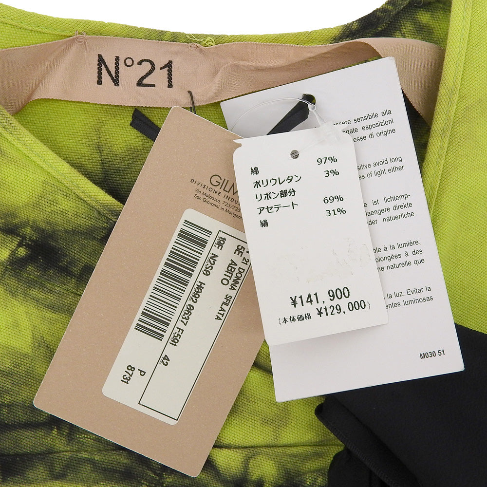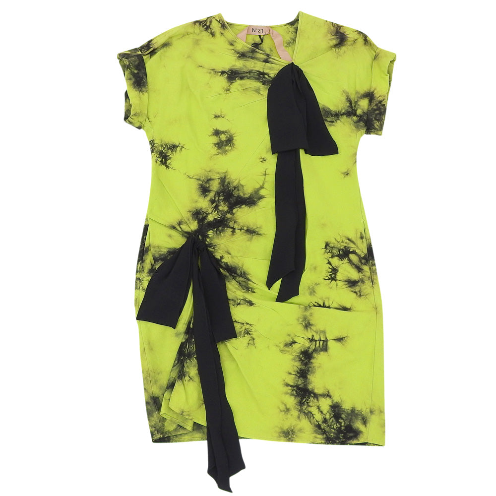 N゜21 ヌメロ ヴェントゥーノ 新品同様 リボン タイダイ柄 コットン ワンピース レディース グリーン 42 19SS ワンピース 42