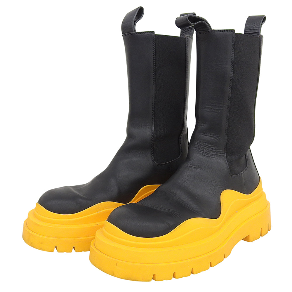 BOTTEGA VENETA ボッテガヴェネタ タイヤ チェルシーブーツ シューズ レディース ブラック×オレンジ 38 シューズ 38
