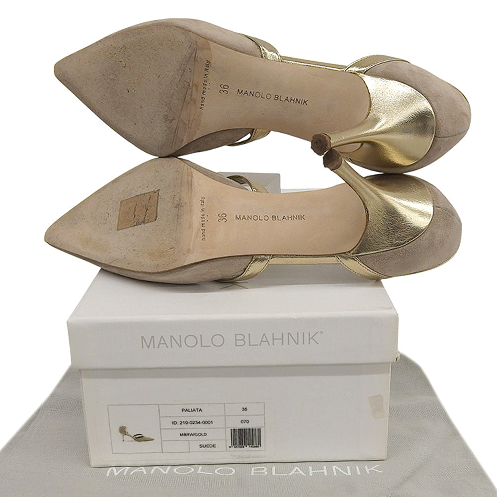 MANOLO BLAHNIK マノロブラニク PALIATA レザー×スエード ヒールパンプス レディース ベージュ×ゴールド 36 シューズ 36