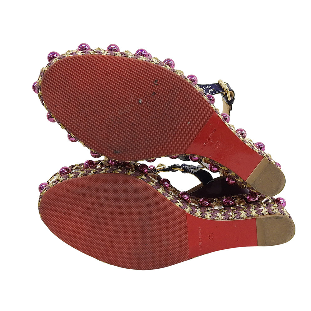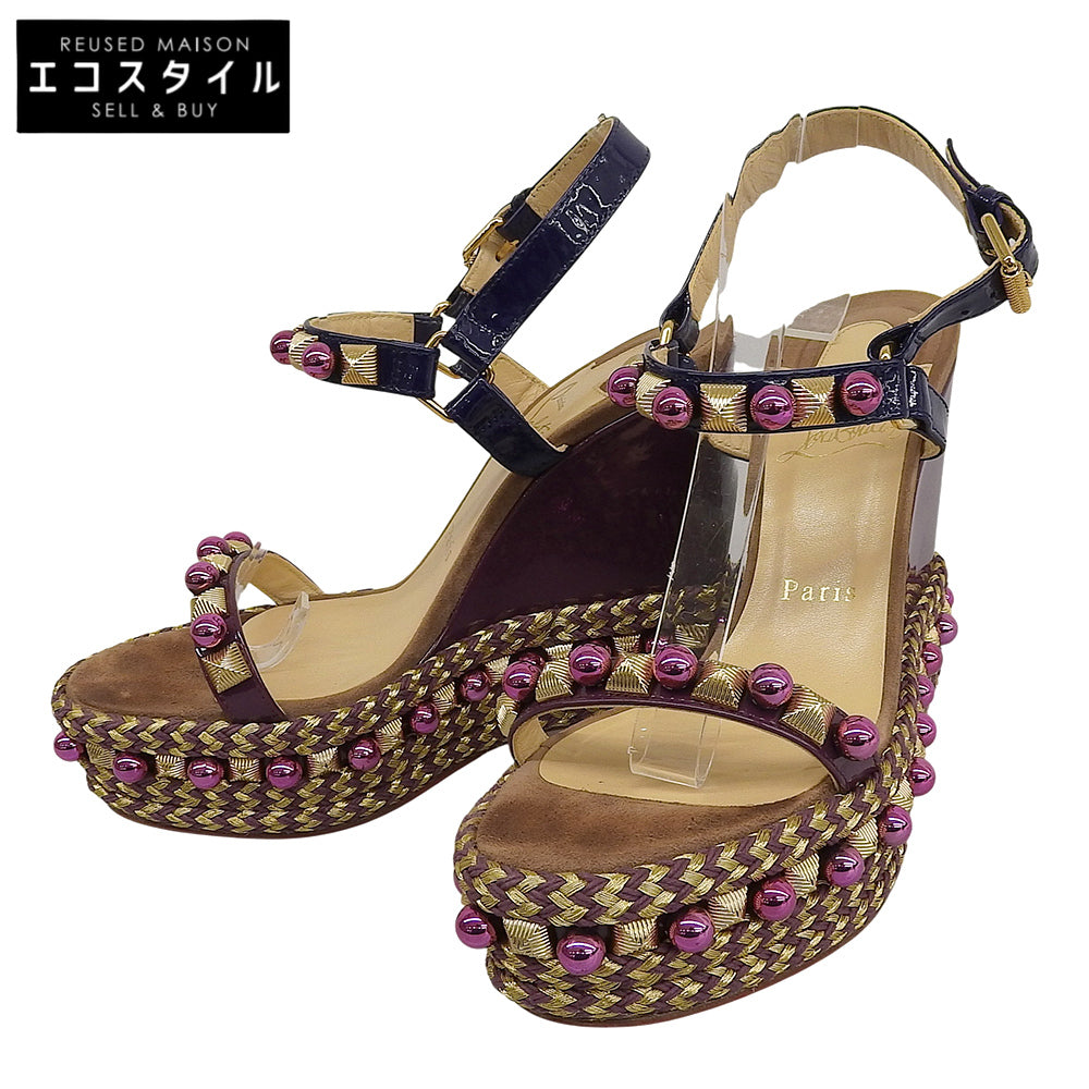 Christian Louboutin クリスチャンルブタン エナメル ウェッジソール サンダル レディース パープル 38 シューズ 38