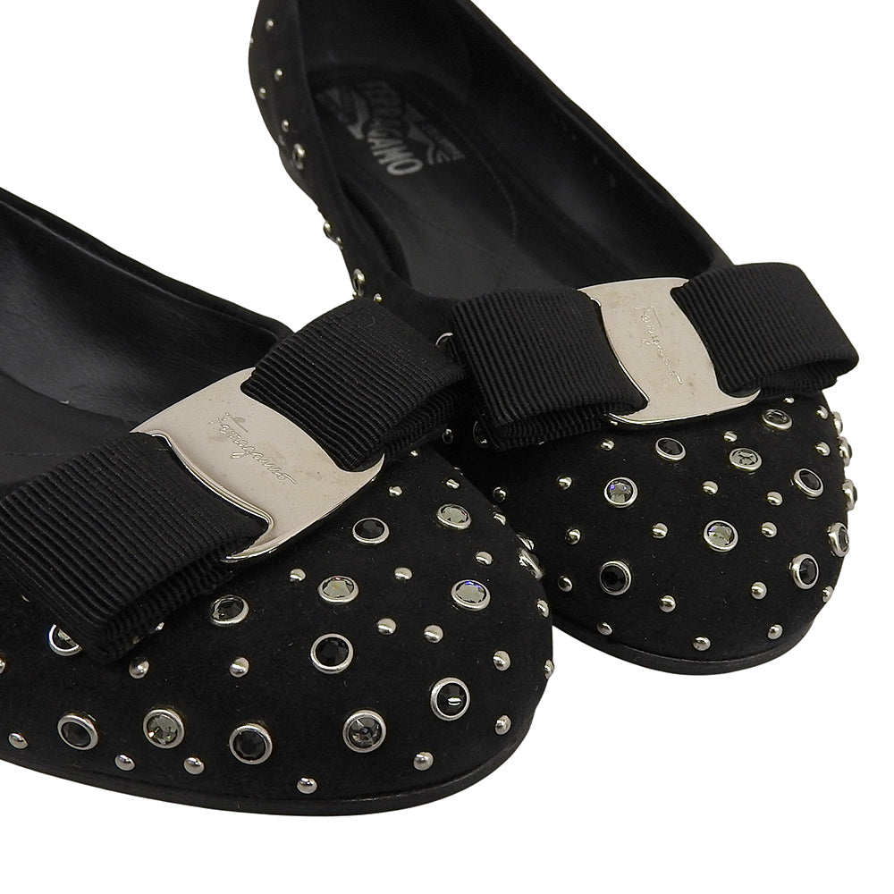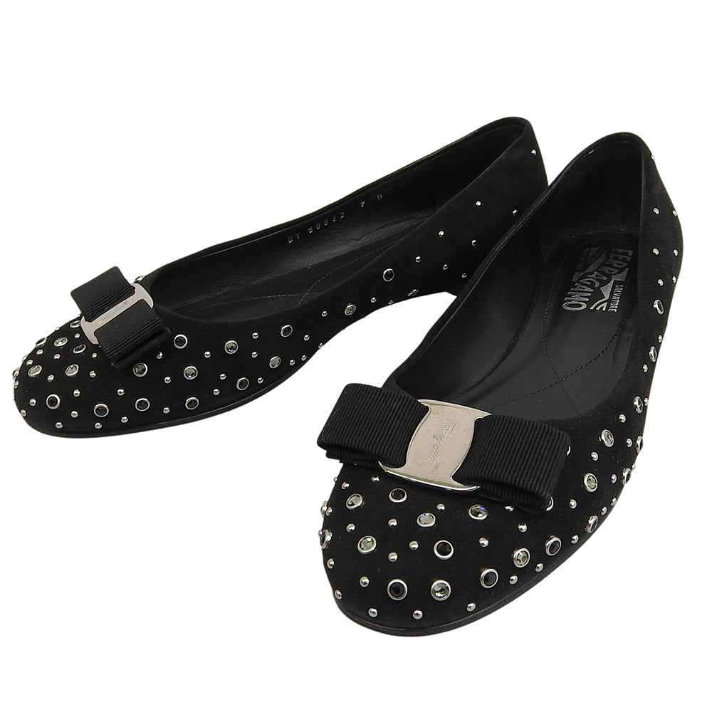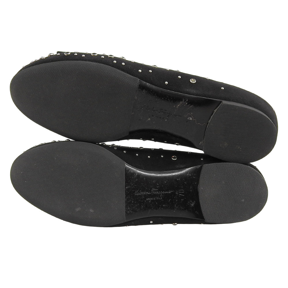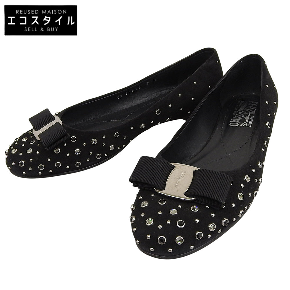 Salvatore Ferragamo サルヴァトーレフェラガモ 美品 ヴァラ スタッズ フラット パンプス レディース ブラック 7D シューズ 7D