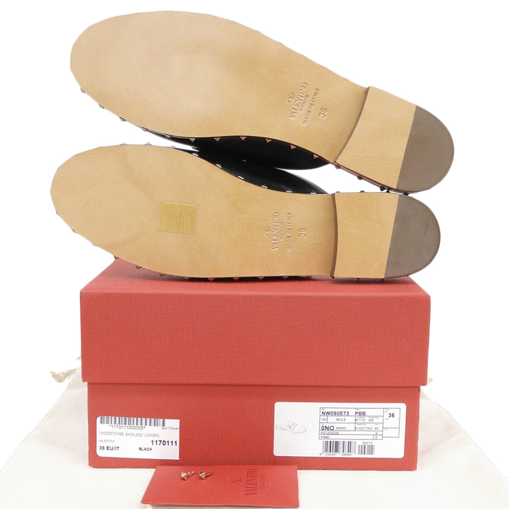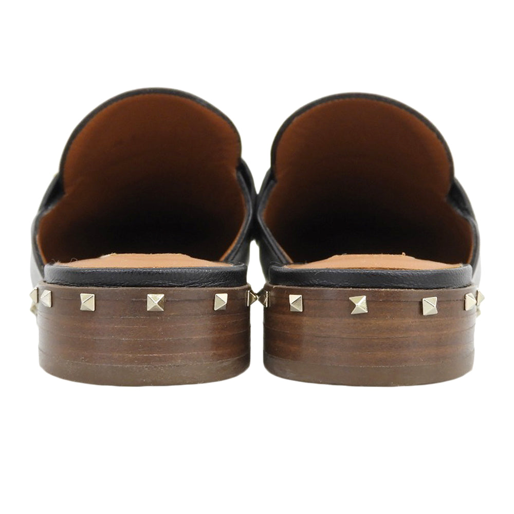 Valentino Garavani ヴァレンティノガラヴァーニ 新品同様 レザーソール ロックスタッズ フラット ミュール シューズ レディース 黒 36 シューズ 36