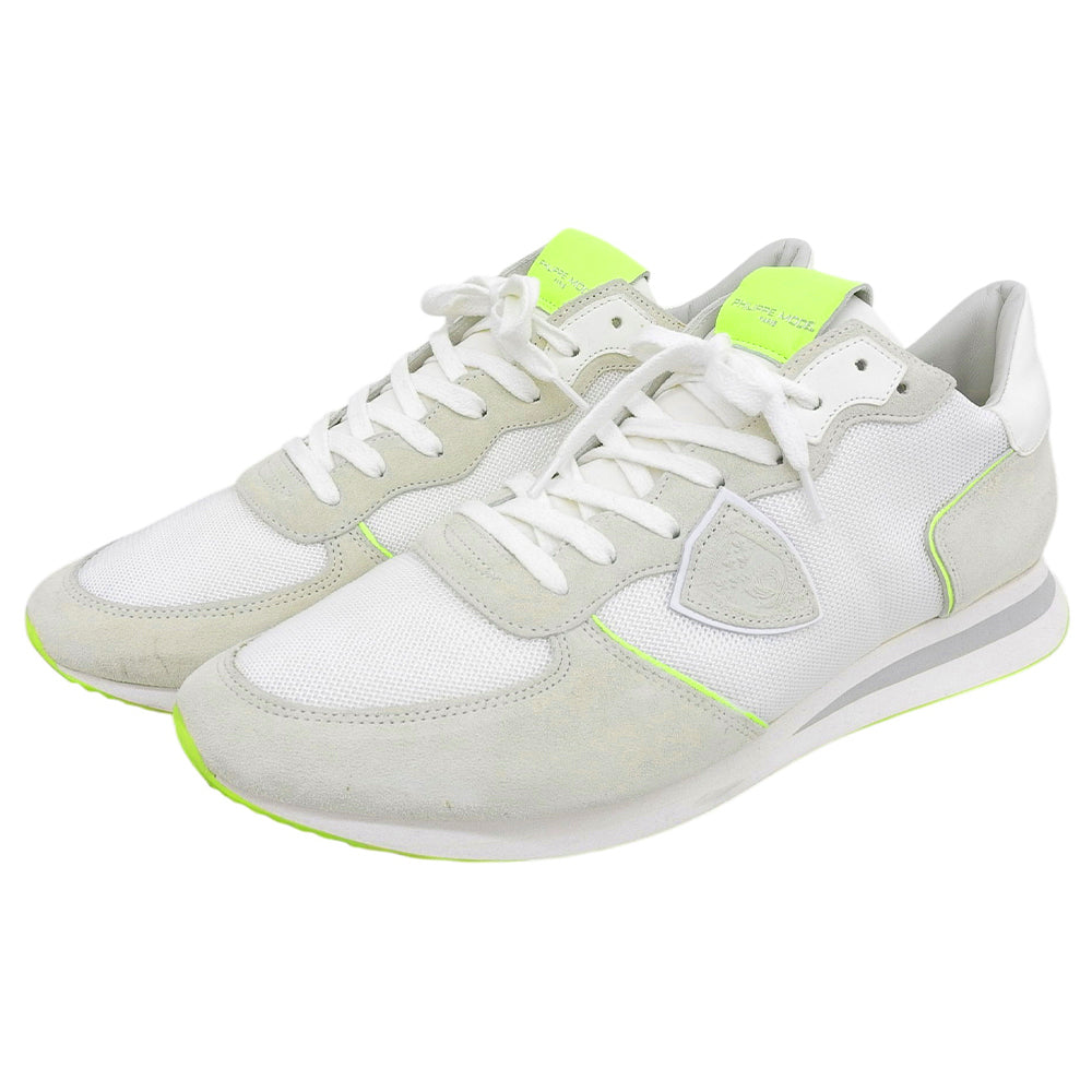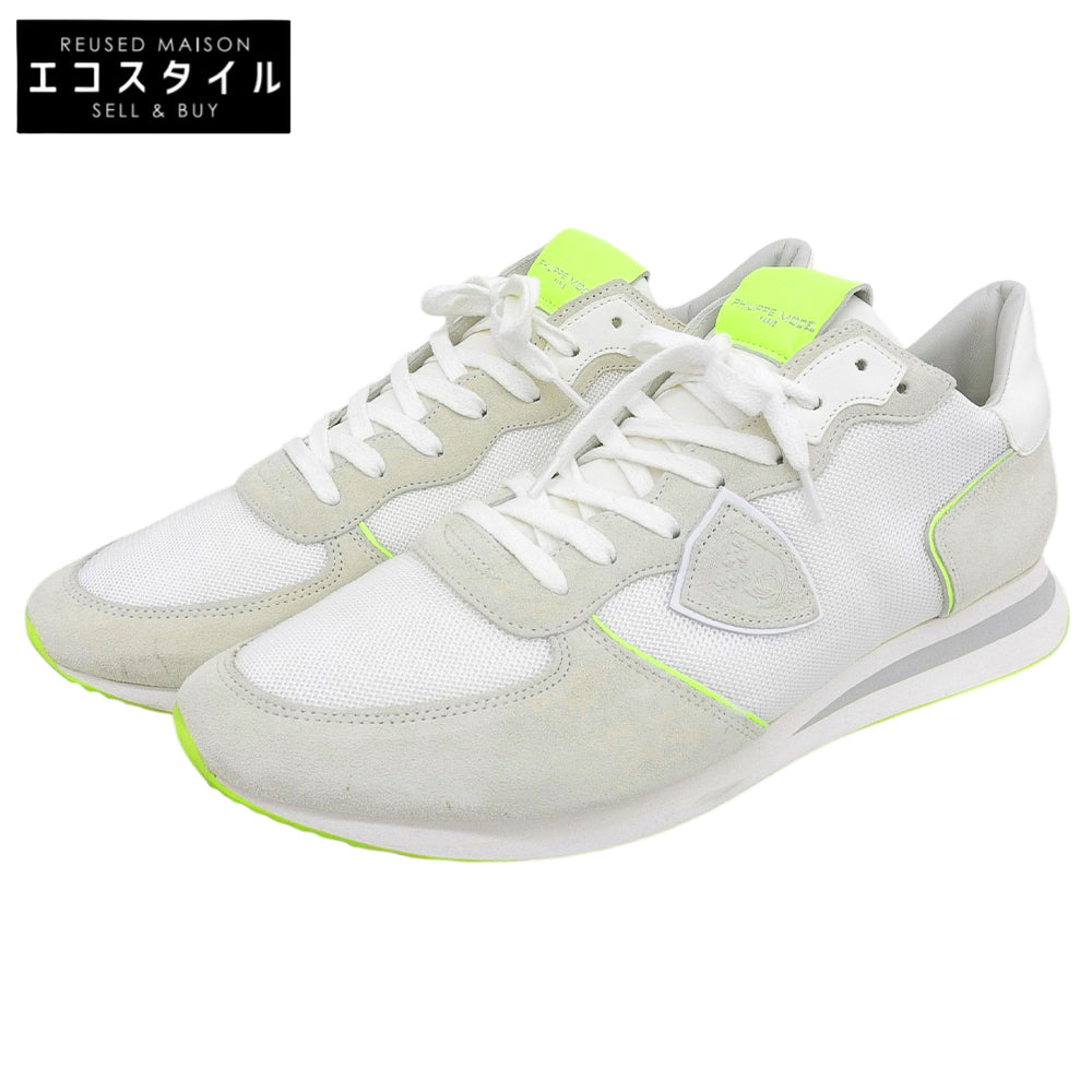 Philippe Model フィリップモデル 美品 ナイロン スエード スニーカー シューズ メンズ ホワイト ライトグレー 45 シューズ 45
