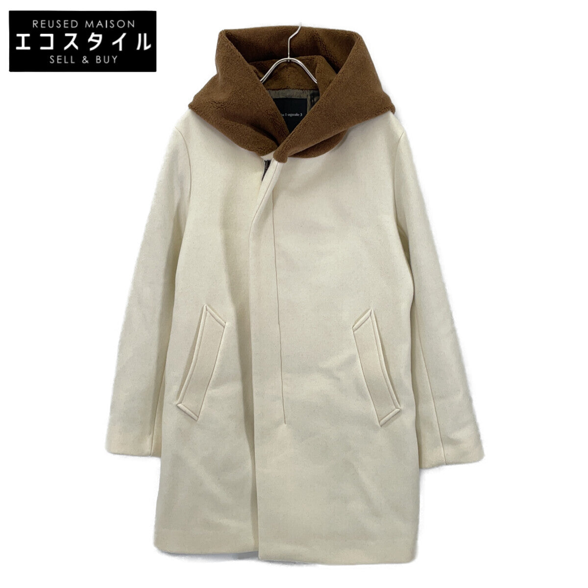 1piu1uguale3 ウノピゥウノウグァーレトレ MRC157-WOL157 ベージュ×キャメル WRAP HOODED ウールボアフード切替コート コート V